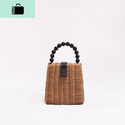 编织包女编2019新款复古藤编包串珠手提单肩斜挎海边度假沙滩包NEW LAKE 咖啡色藤条珠把咖啡色女斜挎包