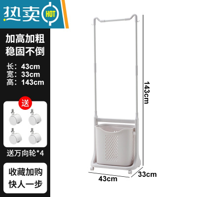 敬平落地次净挂衣架带轮浴室收纳卧室脏衣篮篓隔夜衣帽移动晾衣架置物 C款[挂衣&放脏衣]移动衣帽架+脏衣篮