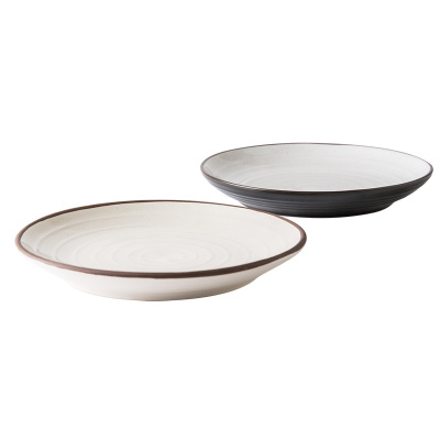 亿嘉IJARL 日式时尚家用陶瓷牛排盘西餐盘圆形水果盘平盘大菜盘西餐盘餐具韦斯顿8英寸黑白色两只装