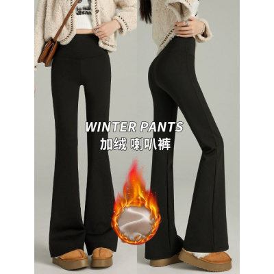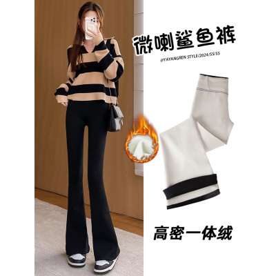 黑色加绒微喇叭鲨鱼裤女外穿秋冬季加厚保暖棉裤瑜伽羊羔绒打底裤