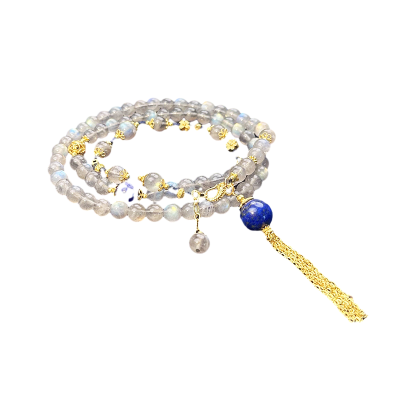 新金珠宝 S925银珠串流苏项链 冷艳灰月光珠串多层手串民族风1042