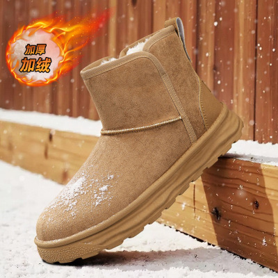 时尚休闲棉鞋男士保暖雪地靴低筒透气绒面加绒加厚男鞋冬季棉靴子