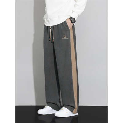 灯芯绒高端男士裤子秋冬季新款宽松直筒刺绣阔腿潮牌拼色休闲裤男