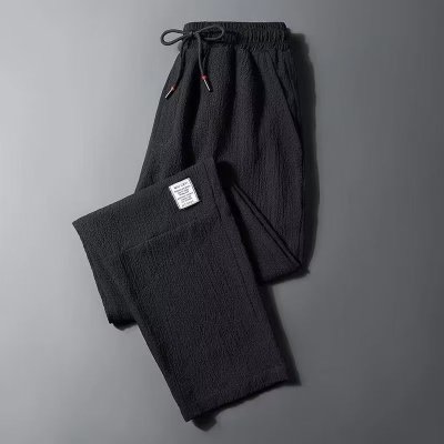 休闲裤男士春秋夏季新款冰丝薄款直筒贴标韩版宽松大码运动九分裤