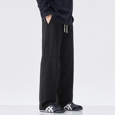 YANXU运动裤男夏季薄款黑色垂感男款卫裤直筒裤男生裤子男士休闲裤长裤