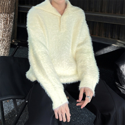 男装潮牌毛绒翻领针织衫情侣款韩系慵懒风宽松套头长袖毛衣男