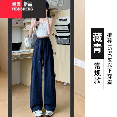 YIBUSHENG藏青色速干运动裤女薄款2024新款高腰束脚显瘦小个子休闲阔腿裤