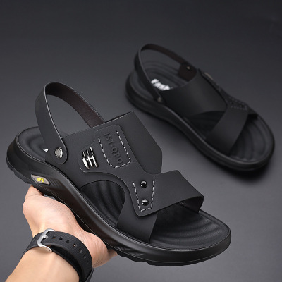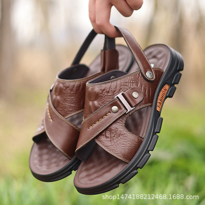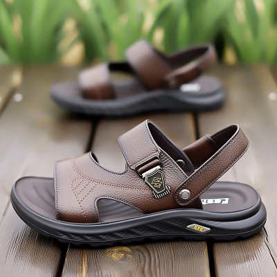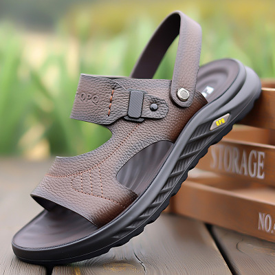 凉鞋男夏季新款休闲沙滩鞋男头层牛皮外穿防滑两用凉拖鞋男32166