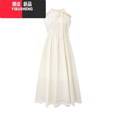 YIBUSHENG芭蕾风无袖系带挂脖蝴蝶结连衣裙季法式收腰小个子温柔气质长裙