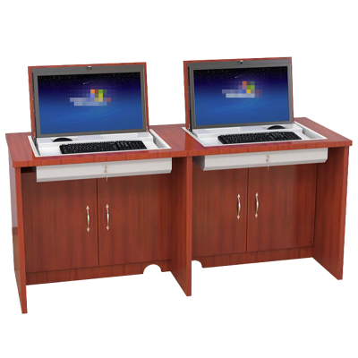 鑫虎威 办公家具双人位翻转电脑桌隐藏显示器式电脑桌部队学校电教室机房培训桌