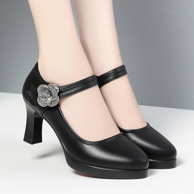 深口单鞋女高跟鞋春秋新款防水台软底细跟厚底不累脚加绒中年皮鞋