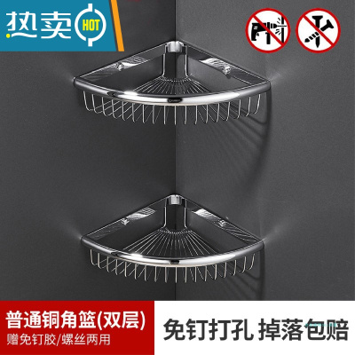 敬平杜拉维特全铜实心免打孔三角篮转角淋浴房壁挂式卫生间置物架角架 扇形网丝银色双层三角篮 [打孔+免打孔]浴室置物架