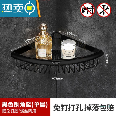 敬平杜拉维特全铜实心免打孔三角篮转角淋浴房壁挂式卫生间置物架角架 扇形网丝黑色单层三角篮 [打孔+免打孔]浴室置物架