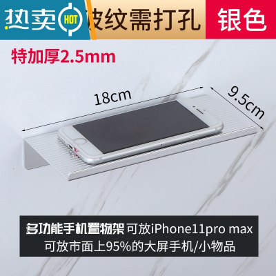 敬平卫生间厕所手机架壁挂墙上公共场所放手机架隔断板置物架纸巾托盘 加厚铝银波浪纹(打孔)浴室置物架
