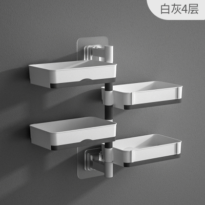 [补贴10%]肥皂盒免打孔香皂架卫生间置物架旋转壁挂式沥水高档厕所家用多层 四层-简约白灰[180°旋转.]