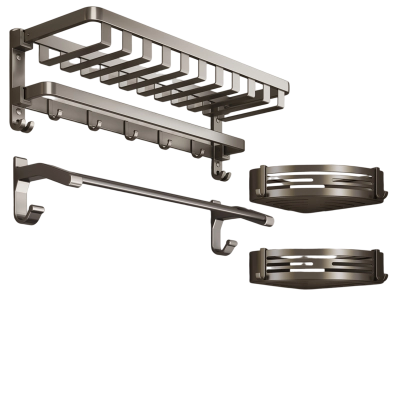 LONMATE 枪灰色太空铝卫生间免打孔置物架 四件套
