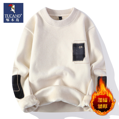 啄木鸟毛衣男士2024新款针织衫韩版宽松加厚加绒保暖衣圆领打底衫