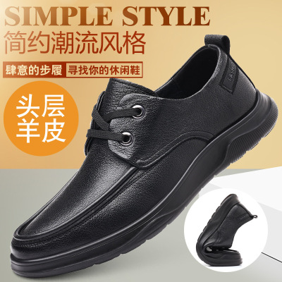 头层牛皮秋冬季新款男士休闲鞋真皮透气皮鞋男款厚底男鞋鞋子