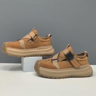 男生头层牛皮厚底休闲鞋男款潮鞋真皮百搭男士欧洲站透气增高男鞋