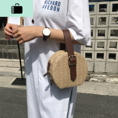 韩国时尚编织小圆包女夏天百搭小众设计师单肩斜挎包潮NEW LAKE 米色新品女斜挎包