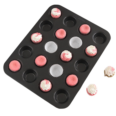 学厨 迷你20连杯不粘玛芬蛋糕烘焙模具32.8*25.8*2.2cm黑色面包布丁烤盘马芬杯 家用烤箱用具 WK9752
