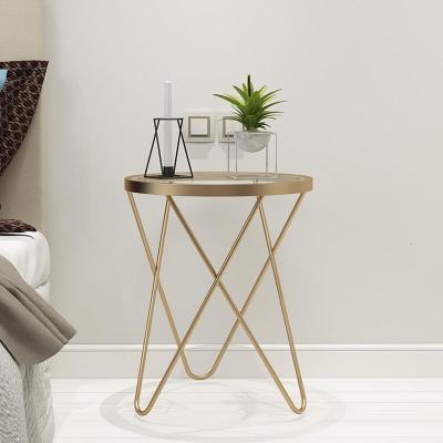森美人北欧客厅沙发边几角几简约现代创意玻璃铁艺茶几金色小圆桌小边桌