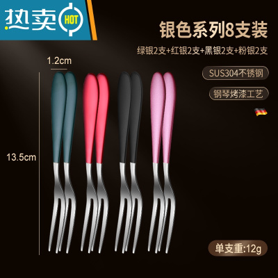 敬平304不锈钢水果叉家用儿童安全蛋糕叉子轻奢水果签果插 红银2+绿银2+粉银2+黑银2