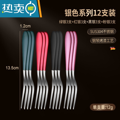 敬平304不锈钢水果叉家用儿童安全蛋糕叉子轻奢水果签果插 红银3+绿银3+粉银3+黑银3