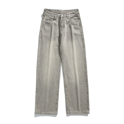 宽松直筒港风牛仔裤男做旧百搭松紧牛仔裤水洗拖地裤男孩
