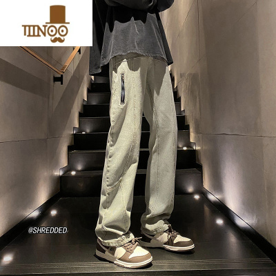 YANXU水洗做旧牛仔裤男款2023新款潮牌直筒阔腿设计感宽松长裤子