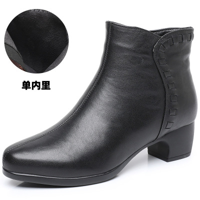 真皮粗跟短靴女冬季软底加绒妈妈皮鞋防滑中跟复古舒适女棉靴