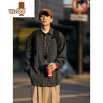 YANXU日系复古格子衬衫男士潮牌百搭休闲长袖痞帅宽松衬衣服外套