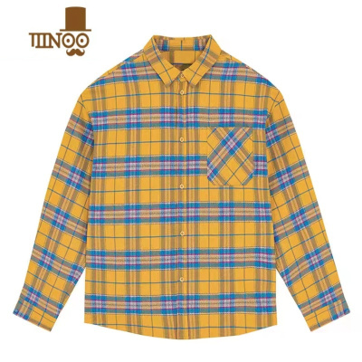 YANXU港风复古黄色格子长袖衬衫男秋季新款美式高街vibe风休闲衬衣外套