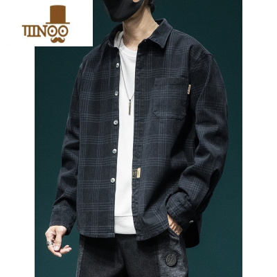 YANXU港风复古格子衬衫男长袖新款潮牌痞帅宽松百搭感衬衣外套