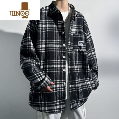 YANXU薄款格子长袖衬衫男宽松ins潮流韩版衬衣男士工地干活工作服