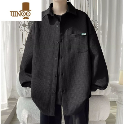 YANXU灯芯绒长袖衬衫式外套男款潮流牌港风感痞帅华夫格子衬衣