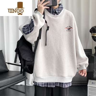 YANXU格子领卫衣男假oversize上衣款无帽潮牌秋季外套