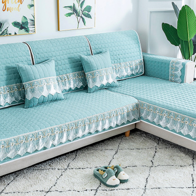 家柏饰(CORATED)四季通用防滑沙发垫坐垫子布艺全包萬能沙发套罩沙发盖布沙发巾 澜亭浅蓝 90*240cm
