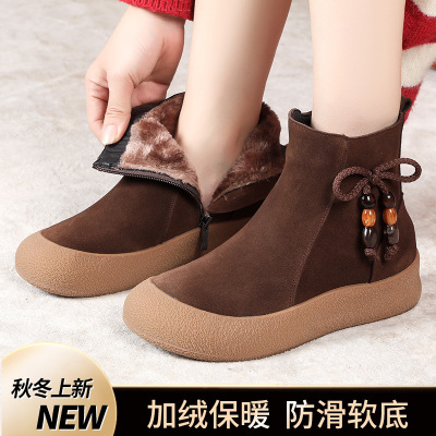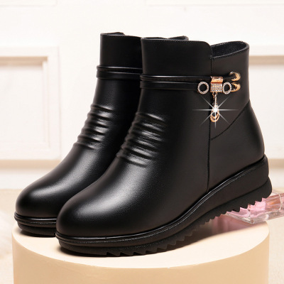 冬季加绒中老年短靴平底软面大码女鞋子防滑妈妈保暖棉鞋女式皮鞋