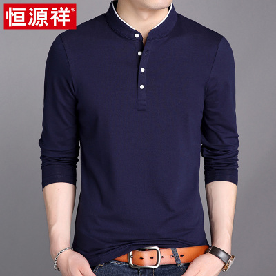 恒源祥春秋中年男士长袖t恤纯色棉质半高立领爸爸中山装打底上衣