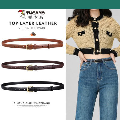 啄木鸟皮带女装饰百搭细窄款腰带针扣夏季潮牛仔裤2025新款裤带潮