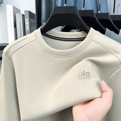 新款圆领青年长袖光滑卫衣 日常休闲百搭简约套头运动打底卫衣T恤