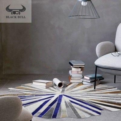 家柏饰(CORATED)公主少女心卧房间荷叶形圆形彩色蓝棕灰绿色手工牛皮拼接地毯