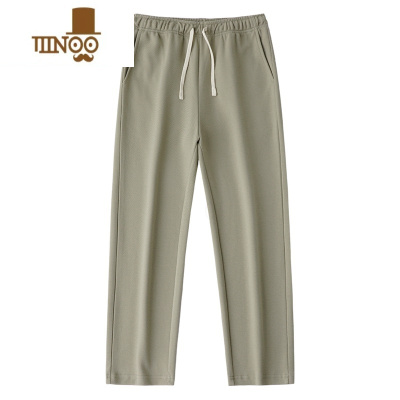 YANXU350g灰绿色斜纹宽松直筒休闲裤松紧腰纯色垂感运动卫裤男女款