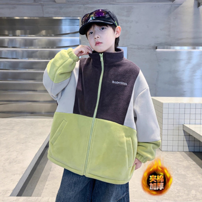 儿童装男童夹棉外套秋冬款新款男孩中大童加厚冬季假两件棉衣