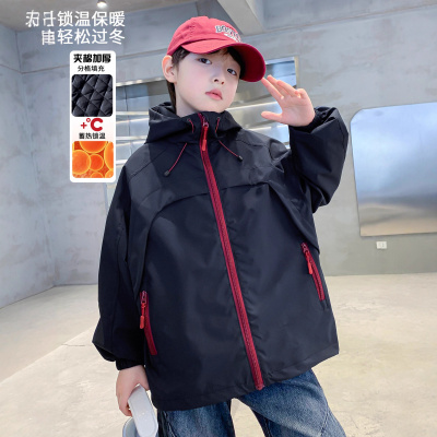 男童夹棉外套秋冬款新款男孩加厚冬装潮酷中大儿童冬季冲锋衣