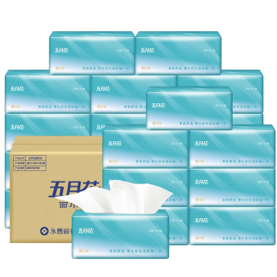 五月花抽纸3层100抽30包餐巾纸面纸卫生纸厕所厕纸家用纸巾擦手纸实惠装