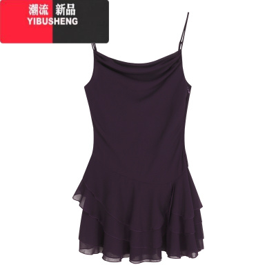 YIBUSHENG纯欲性感荡领吊带连衣裙女季紫色蛋糕短裙露背收腰显瘦a字裙子