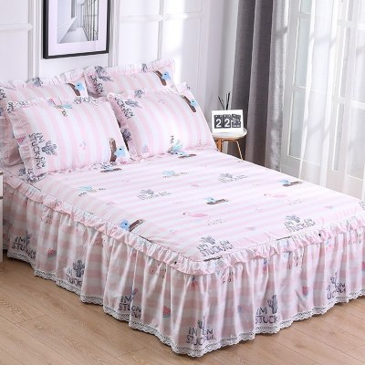 美帮汇全棉床罩床套防滑床裙式单件全棉保护防尘米床单1三件套花边公主 青春 150x200[床裙+2个枕套]