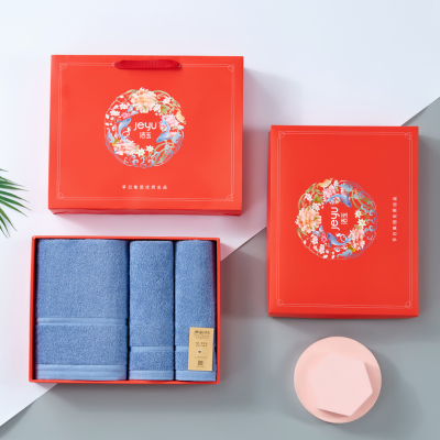 洁玉 似锦开门红云舒2毛巾1浴巾三套巾礼盒 J2701-C 钴月蓝*3条